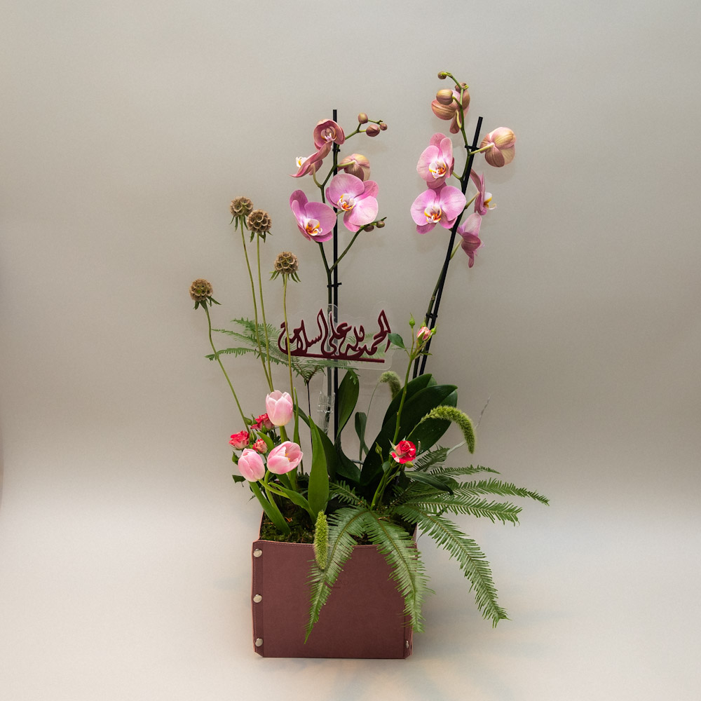 A tall, airy arrangement that captures the freshness of open meadows—light, uplifting, and full of natural charm. Designed with vertical harmony to bring a refined sense of movement into modern spaces.