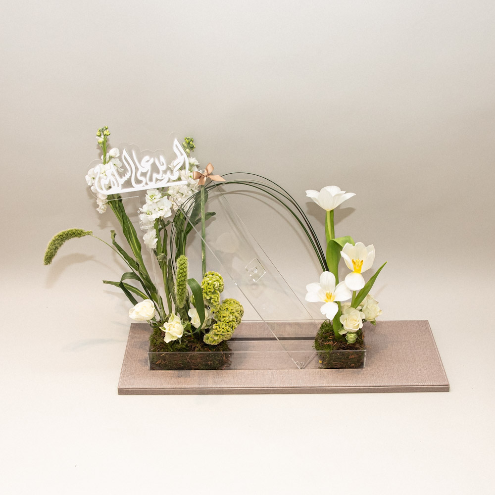 A dreamy arrangement inspired by the calm glow of evening light. Soft blooms and gentle greenery create an effortless elegance, bringing quiet harmony and refined warmth to any space.